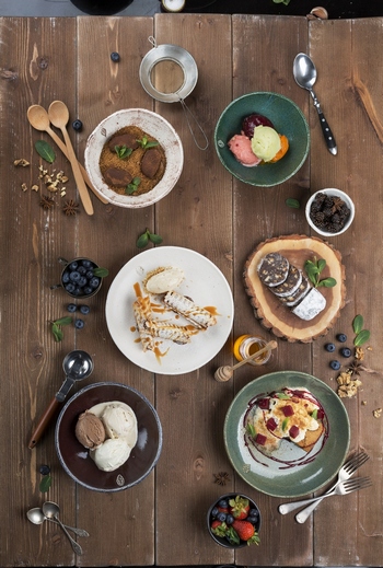 - вареники с вишней и сметанным кремом - 340 руб.,