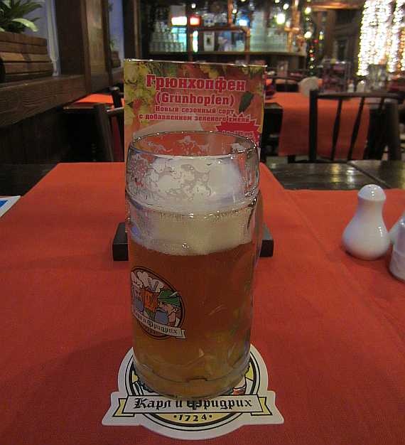 Дорогие друзья, ценители пива! Новое сезонное пиво Грюнхопфен уже в продаже! Это пиво сварено с добавлением несортового свежего хмеля, собранного ранней осенью на территории «пивного сада» ресторана «Карл и Фридрих». Обладает ярко выраженным хмелевым ароматом и заметной горечью. В этому году благодаря новому пивоваренному оборудованию и удачному урожаю хмеля Грюнхопфен получился очень вкусным! Стоимость за пол-литра — 160 руб. Главный пивовар Алексей Черныш рекомендует!