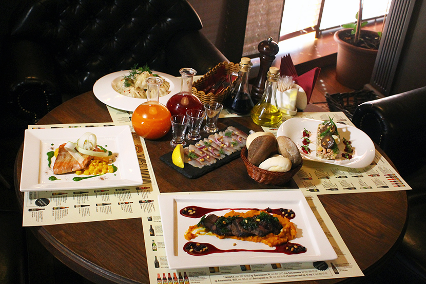 Вот смотрите... Сперва, конечно, рыбки малосольной, - кижуча (420 руб.), муксуна или омуля (470 руб.). С облепиховой настойкой (190 руб.) в качестве стартера.