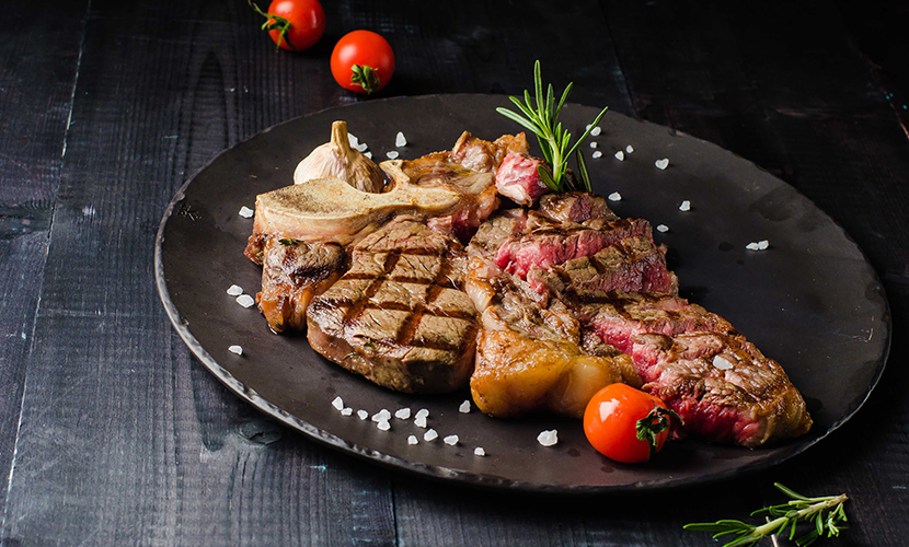 Настало время сочной отборной говядины! Все мясоеды спешат в «Гастрономику», чтобы попробовать новые стейки на кости по суперценам: королевский портер хаус, обладающий насыщенным вкусом стриплойн или классический рибай.