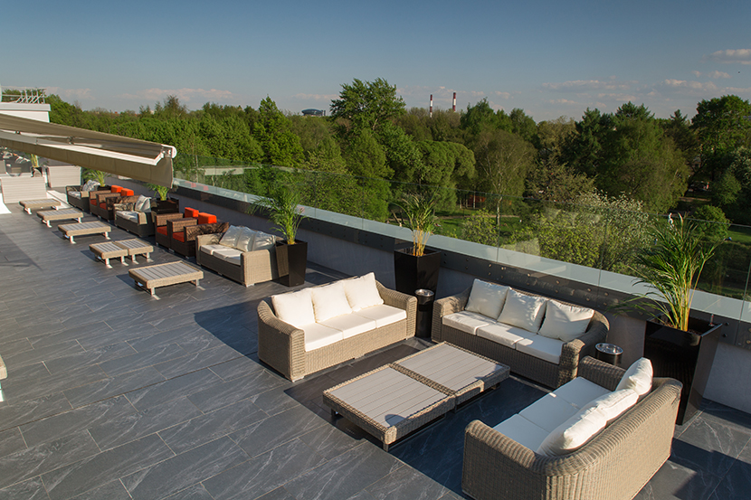 Вторая терраса предназначена для долгих разговоров и расслабленного отдыха на мягких диванах с бокалом вина. Одновременно наслаждаться солнечными лучами и умиротворяющим видом Таврического сада смогут почти 200 гостей. Проект выполнили амбициозные молодые архитекторы - Алексей Авдеев и Станислав Айнулов.