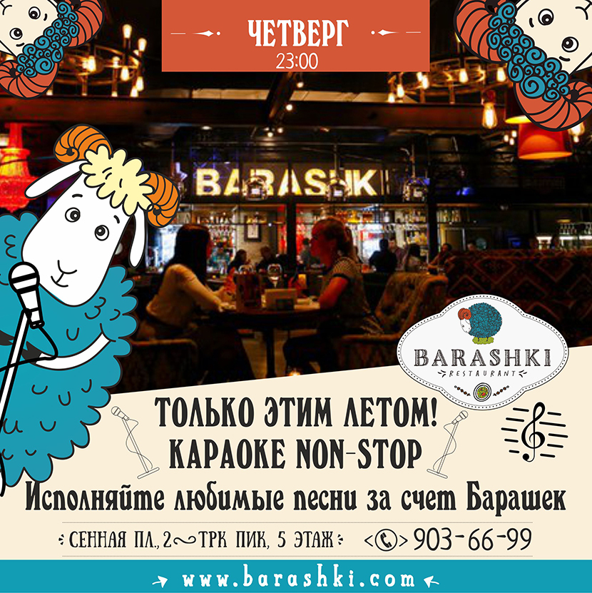 Всё лето по четвергам с 23:00 караоке за счет барашек!