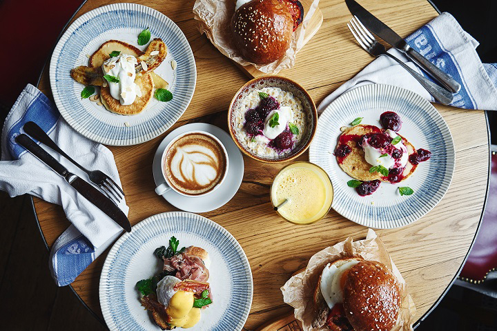 Завтраки подаются каждый день с 9:30 до 12 часов и включают как сытные блюда из яиц и сэндвичи, так и легкие - натуральный йогурт с ягодами, овсянка или блинчики. Меню теперь состоит из четырех разделов: Выбор Джейми, куда входит Супер Фуд омлет из белков с чечевицей, киноа, диким рисом и рикоттой по рецепту из новой книги Джейми, Русский завтрак из глазуньи с беконом, митболами, тушеной фасолью, грибами, драником и томатами на гриле и Вегетарианский завтрак из глазуньи с овощами.