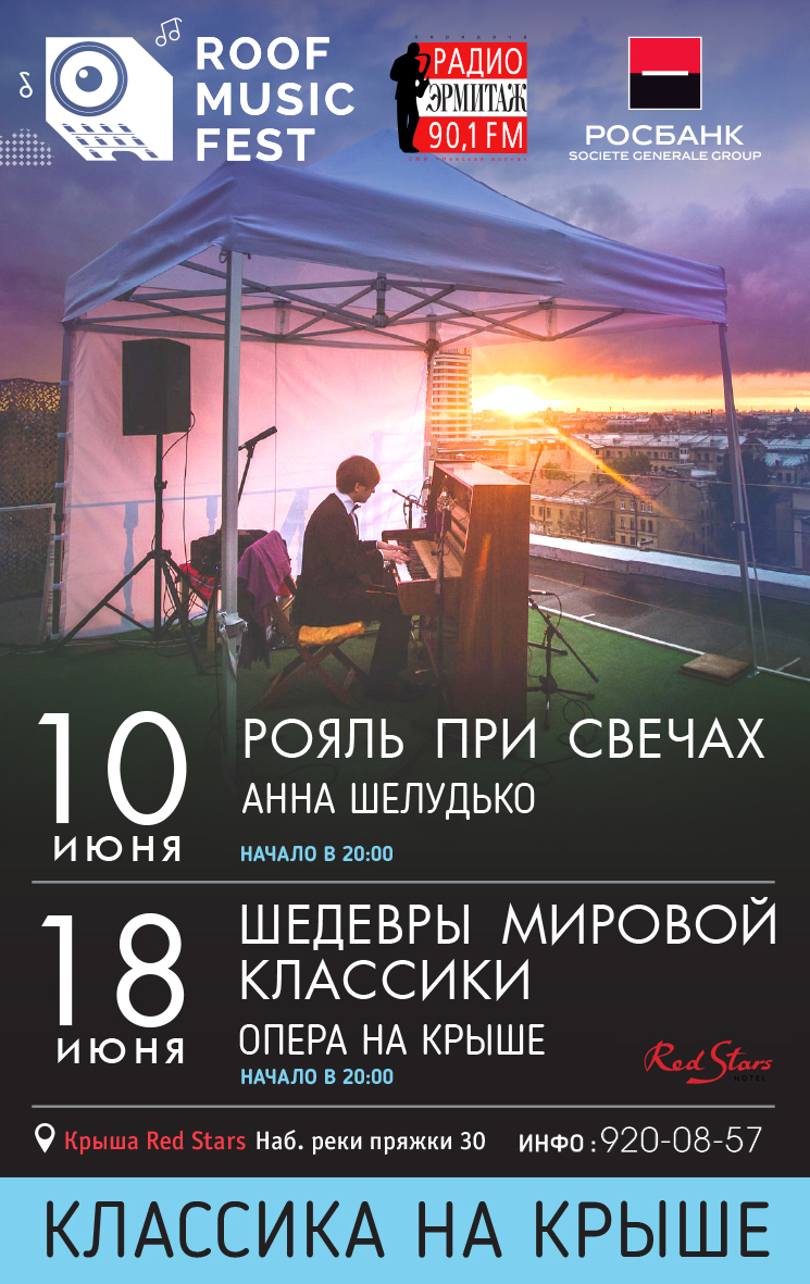 Крыша Отеля «Red Stars», наб. реки Пряжки, 30. Начало концертов в 20:00.