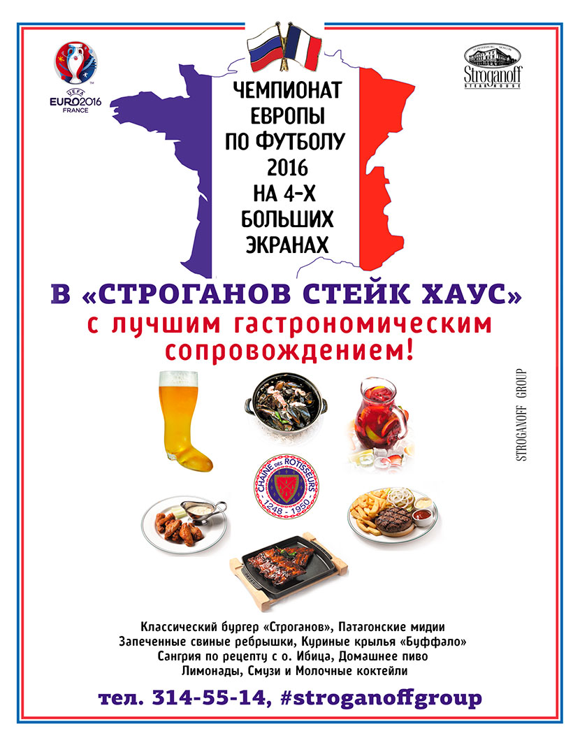 Приглашаем в ресторан «Строганов Стейк Хаус» на спортивные трансляции игр Чемпионата Европы по футболу с лучшим гастрономическим сопровождением!