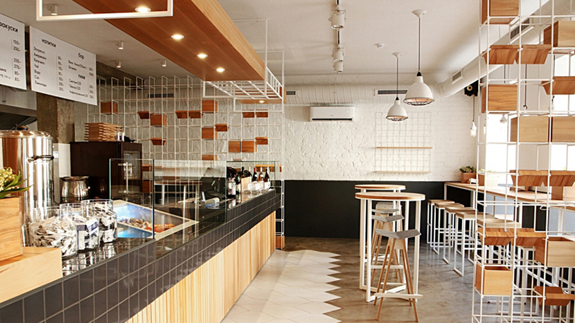 «Fjord» - это небольшое кафе с лаконичным дизайном в скандинавском стиле, где предлагают блюда из рыбы и самые разнообразные морепродукты. Дары моря лежат в специальной аквасистеме - гости могут лично убедиться в их свежести, а также понаблюдать за работой поваров, которые трудятся на открытой кухне. Основной упор в меню сделан на морепродукты и сморреброды, которые представлены в 5-ти вариантах: с креветками, семгой, сельдью, крабом и с тар-таром из якутской рыбы. Стоит отметить, что сельдь для сморребродов тут собственного посола, а цельно-зерновой хлеб - собственного производства. Помимо этого в меню есть фиш бургер, фиш дог, крабболы и фиш энд чипс. Все блюда подаются в одноразовой экологически чистой посуде, изготовленной из кукурузы. Ценовая политика весьма лояльна – самое дорогое блюдо в меню обойдётся всего в 380 рублей. С 10 до 12 часов гостям предлагают завтраки с яйцом Бенедикт и мюсли. Открыто заведение ежедневно до 22:00.