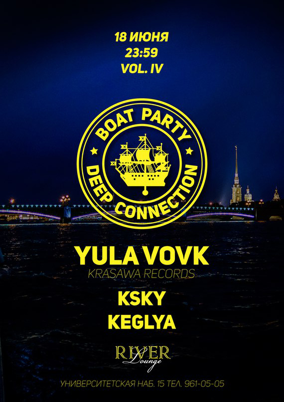 18 июня, в эту субботу, плавучий танцпол River Lounge вновь зовет на свой борт всех любителей хаус-музыки и позитивных вибраций.