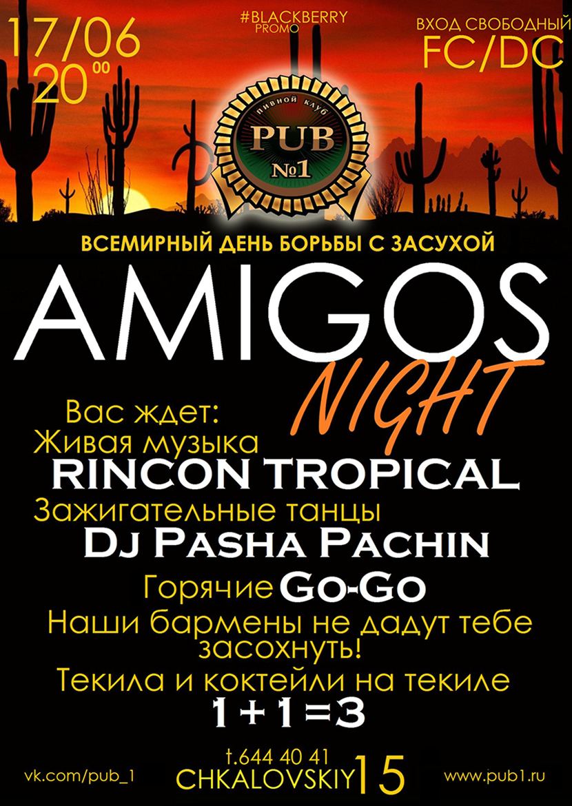 Несмотря на летние каникулы, концертная жизнь в Пабе номер один не останавливается! 17 июня мы отпразднуем Всемирный день борьбы с засухой. Живая латиноамериканская музыка и скидки на мексиканские напитки. 23 июня на нашей сцене легендарная реггей группа Simba Vibration. 24 июня мегапозитивные Лампасы с единственным летним концертом в Санкт-Петербурге. 30 июня мы попрощаемся с первым месяцем лета вместе с маргинальным карикатуристом Федулом Жадным.
