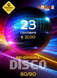 Окунитесь в музыкальное настроение эпохи DISCO вместе с "ГРИЗЛИ"! 23 сентября Grizzly Bar в ТРК "Лондон Молл" зажигательная атмосфера и звуки хитов 80-90-х с нетерпением ждут тебя и твоих друзей! Стартуем в 21.00!