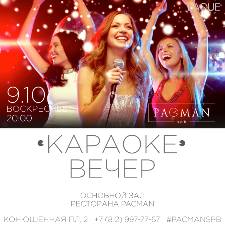 Теперь каждое воскресенье вы сможете почувствовать себя звездой и исполнить любимые композиции с главной сцены ресторана «Pacman»!