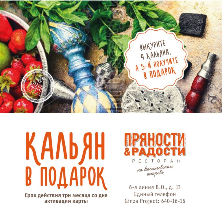 Главное правило акции – Ваша карточка должна быть с Вами каждый раз при заказе кальяна.