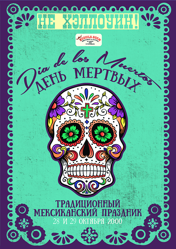 28 и 29 октября ресторан «Tequila-Boom « на Вознесенском празднует не Хеллоуин, а традиционный мексиканский праздник «День Мертвых - El Día de Muertos». Будет не страшно, а страшно весело!