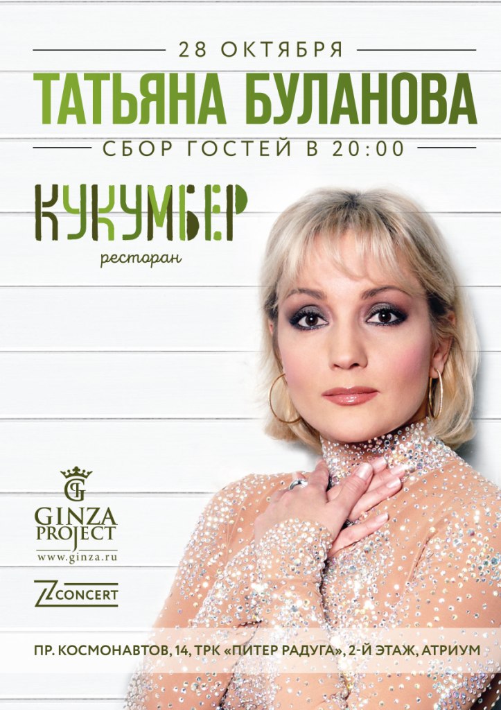 Многогранность ее таланта поражает – певица, актриса, ведущая, писательница, народная артистка России и обладательница престижных музыкальных наград выступит в ресторане «Кукумбер».