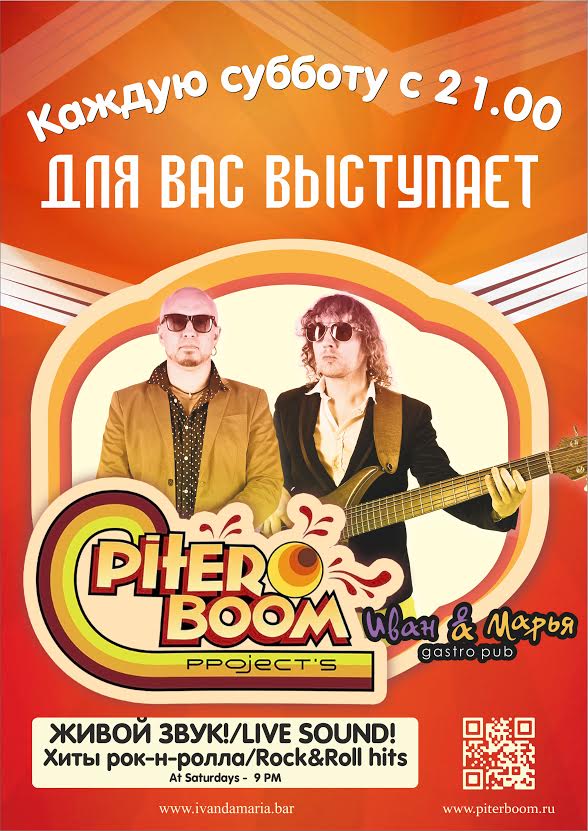 Каждую субботу концерты группы «Piter.BOOM» в гастропабе «Иван да Марья».