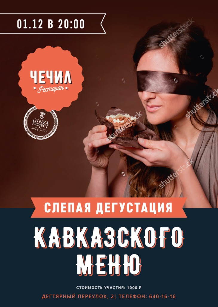 Мы приглашаем гурманов на слепую дегустацию блюд, это интересный формат знакомства с меню, своего рода игра и прекрасный способ задействовать чувства восприятия без использования зрения.