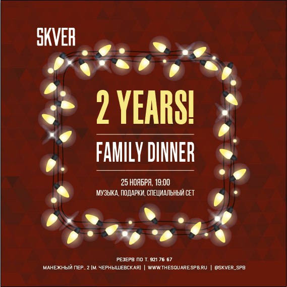 Пройдет он в формате Family Dinner, так как за два года у нас появилось большое количество друзей, которых мы хотим собрать в этот день в теплой обстановке семейного ужина.