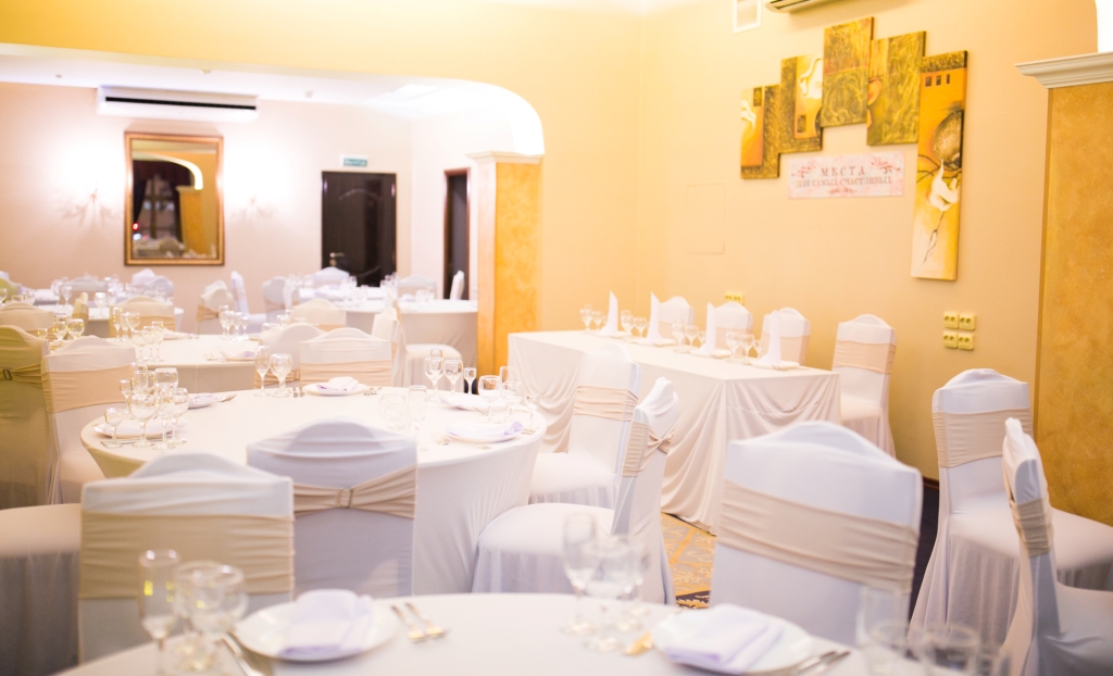 Зал вместимостью до 90 человек, европейское меню, свежий интерьер созданы эксклюзивно для торжественных событий.