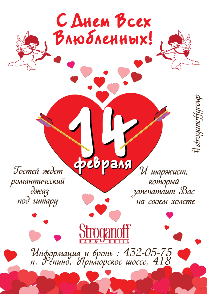 14 февраля загородный ресторан «Строганов Бар и Гриль» приглашает Вас на самый романтический праздник в году.