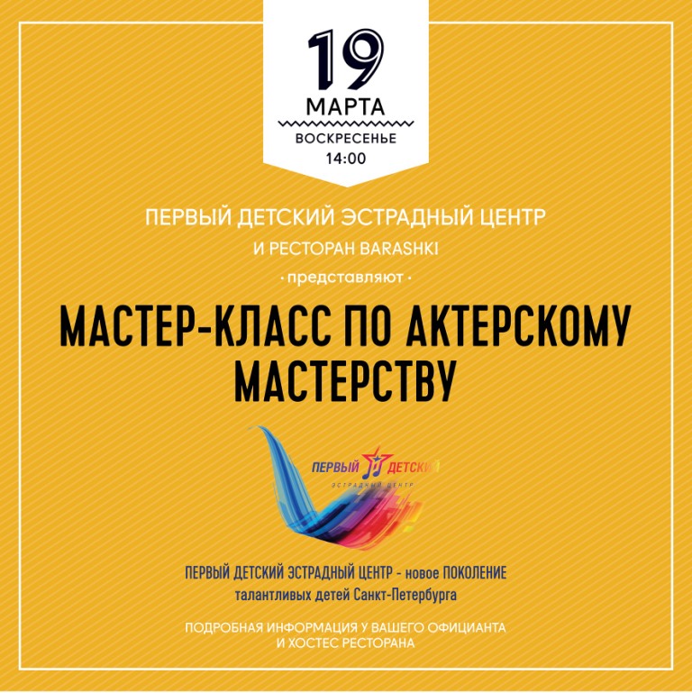 19 марта в 14:00 ресторан «Barashki» превратиться в большую сцену, где каждый ребенок сможет почувствовать себя настоящим актером!