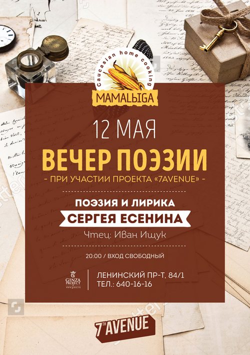 Уже сегодня вечером ресторан «МамаLыga» на Ленинском превратится в творческое пространство для богемного Петербурга: здесь прозвучат стихотворения Сергея Есенина в исполнении талантливого артиста Ивана Ищука.