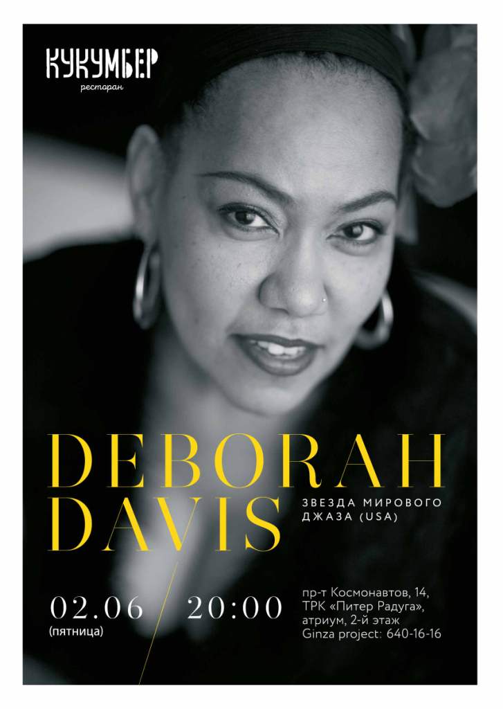 Первый уикенд лета можно провести по-особенному: 2 июня ресторан «Кукумбер» приглашает насладиться чарующим голосом известной американской джазовой исполнительницы Деборы Дэвис.