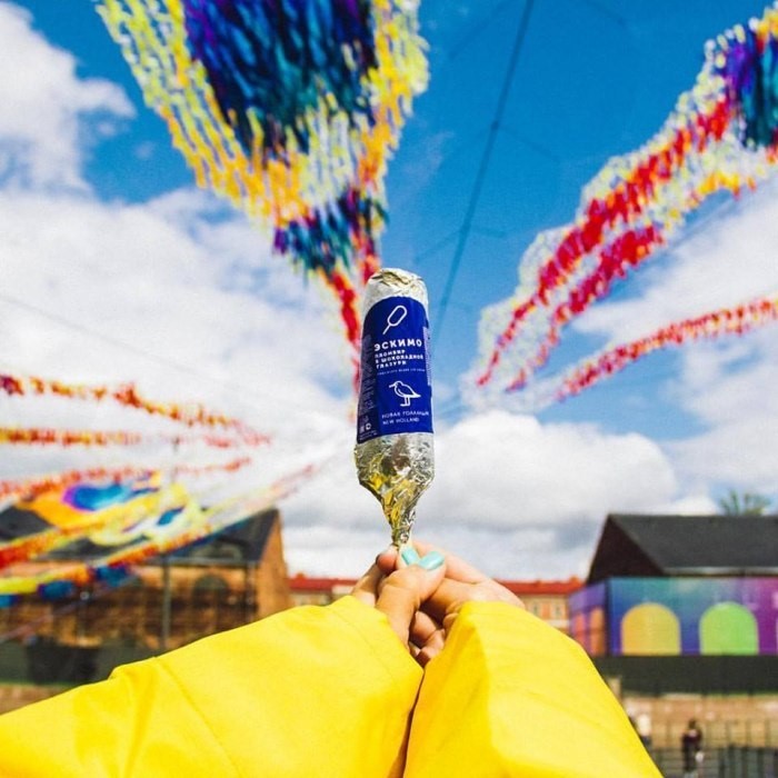 Команда креативного пространства решила к летнему сезону запустить производство собственного мороженого. Разработкой идеи, концепции и фирменного стиля для линии мороженого занимались тоже сами. За основу дизайна этикетки взяли символ острова – чайку. А сам продукт – настоящий пломбир, что изготавливается строго по ГОСТу.