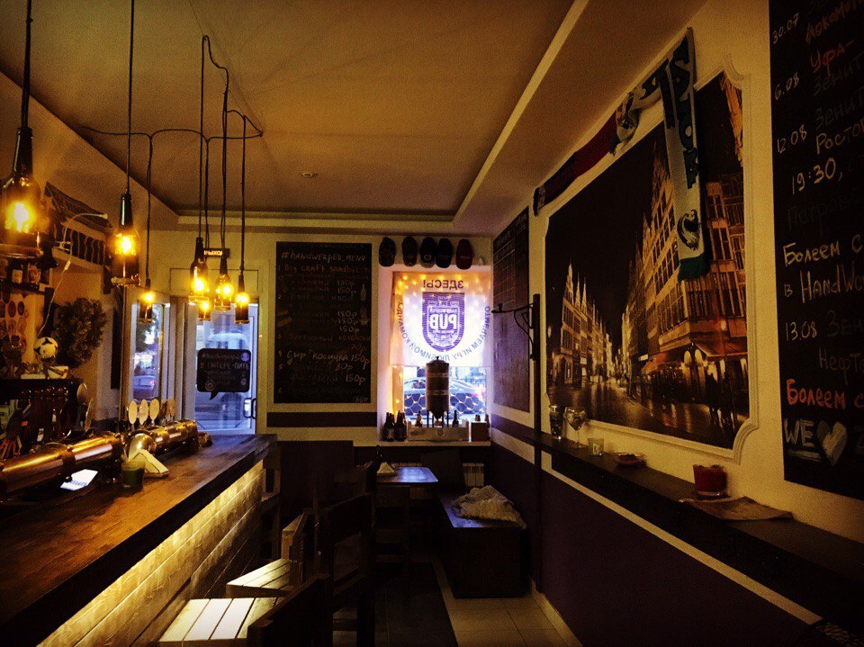 «Hand Werpen Pub» на Ждановской набережной, 7 (метро «Спортивная») – совсем небольшой паб, всё действо в котором крутится вокруг барной стойки. Посетителям предлагают крафтовое пиво на кранах и более 60 видов бутылочного, а к нему лёгкие закуски, бургеры и сэндвичи. Совсем неподалёку ещё и стадион «Петровский», так что атмосфера здесь подходящая. Также анонсируют игры в бирпонг. Один на всех телевизор, одна на всех барная стойка, большой выбор пива и тёплая дружеская атмосфера. Средний чек 200 рублей без напитков.