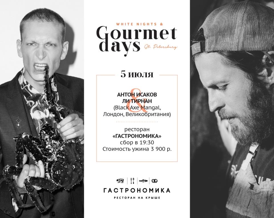 С 4 по 6 июля в нескольких известных заведениях Санкт-Петербурга будет проходить международный гастрономический фестиваль «Gourmet Days». В каждый из дней в трёх разных ресторанах города организуют эксклюзивные ужины, готовить которые станут известные шеф-повара мира.