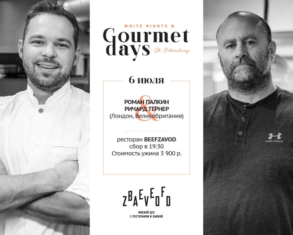 Ресторан «BeefZavod» представит ужин для «настоящих мужчин» от Романа Палкина и Ричарда Тернера. Все позиции в нём – из мяса, которое оба мастера готовят непревзойдённо. Ричард Тёрнер – обладатель премии за лучший в Лондоне стейк, а Роман – шеф-повар самого крупного в городе ресторана для мясоедов.