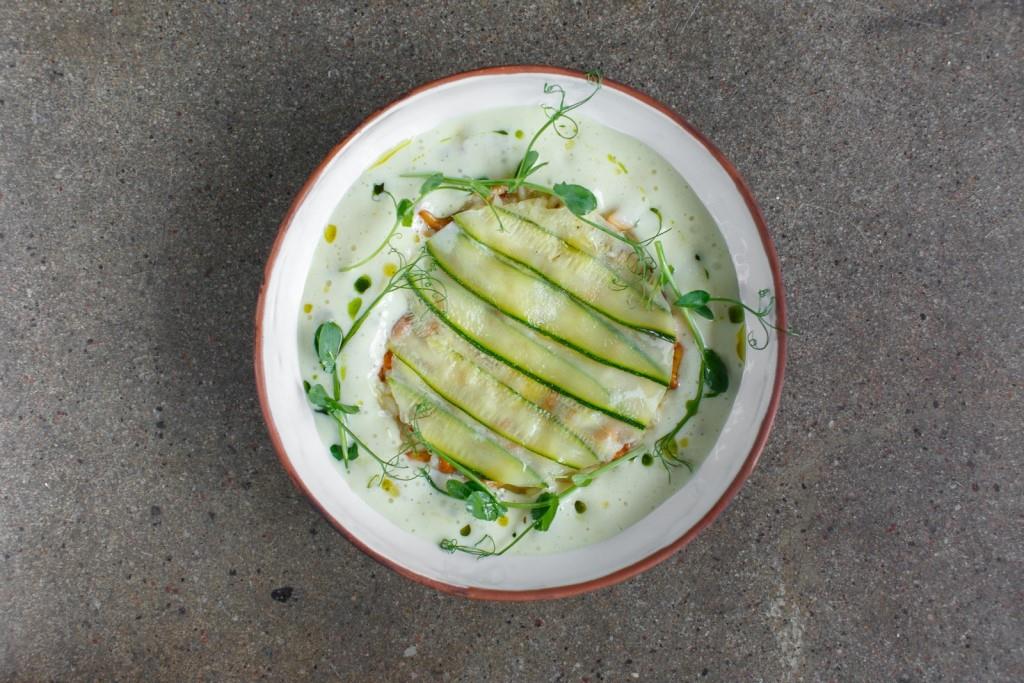 Идея нового авторского меню от Киселева – в подвижности и сезонности, список блюд планируется менять едва не каждый месяц. Так, в августе гостям предлагают особенно много овощных блюд: стейк из цветной капусты сервируется зеленой гречкой, печеная молодая морковь – салатом из полбы, семенами конопли и подкопченным творогом, свекольный суп подается со сметаной из козьего молока и перепелиным яйцом. Для мясоедов готовят стейк бавет с глазированным цикорием, фермерскую курицу с полентой, ризотто с лисичками и слайсами цукини, лопатку ягненка с печеным картофелем и соусом чимичурри – ягненка рекомендуют брать за двоих.
