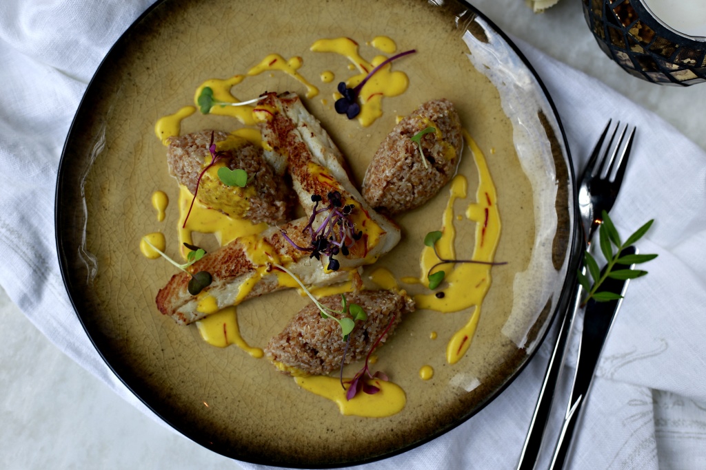 | палтус с полбой и соусом из шафрана | 630 руб. |