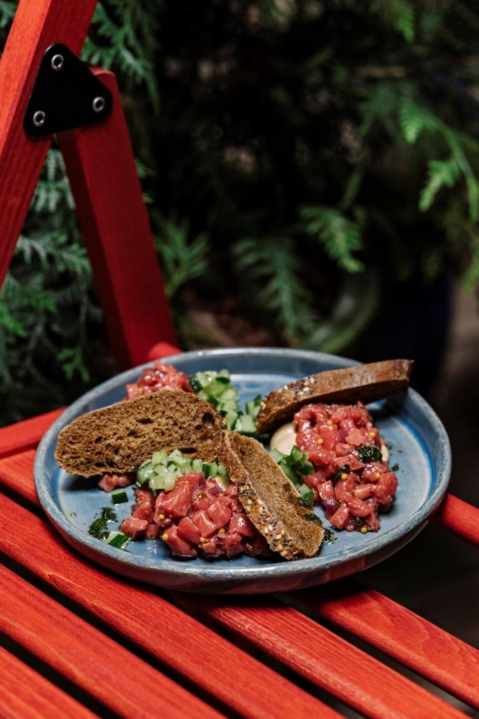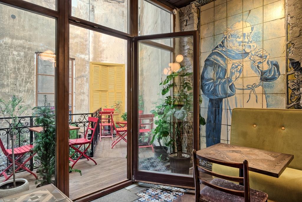 Tawny bar возник будто из ниоткуда – взял и появился в пристройке на набережной Фонтанки напротив Инженерного замка. Бывшую императорскую резиденцию видно из маленького окошка за верхней барной стойкой. Миниатюрный двухэтажный бар в себя вместил лестницу, болотные диваны, статуэтки христианских святых, изображения игривых католиков и патио, повторяющее один в один камерные внутренние дворики в какой-нибудь Сарагосе или Порту – португальский город-порт, через который пару веков назад как раз и начинали возить напиток, давший название бару. Патио доступно в обоих этажах: сесть среди кудрявых пихт, падающих по стенам вьюнов и васильково-белых изразцов, и вот вам Европа, которую мы не теряли. Кормят и поят по логичным португальским мотивам. В небольшом меню закуски и еда от совладельца Романа Редмана: тапасы с анчоусом и печеным перцем, бычьими хвостами с копченым пюре, жареная, а потом маринованная треска эксабече, сэндвич франсезинья, картофельный суп с копчеными колбасками. В алкосписке портвейны, «зеленое» вино, но даже если вы не отличаете портвейн руби от портвейна тони, эстетская легкомысленность Tawny bar вам будет по плечу.
