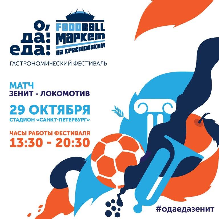 Гастрономический фестиваль устроят на стадионе во время матча сине-бело-голубых с «Локомотивом». Проект под названием «О, да! Еда! Foodball-маркет на Крестовском» впервые стартует 29 октября, чтобы объединить спорт и лучших представителей стрит-фуда. Скажем по секрету: специальных «зенитовских» блюд будет немало – по цвету в том числе.