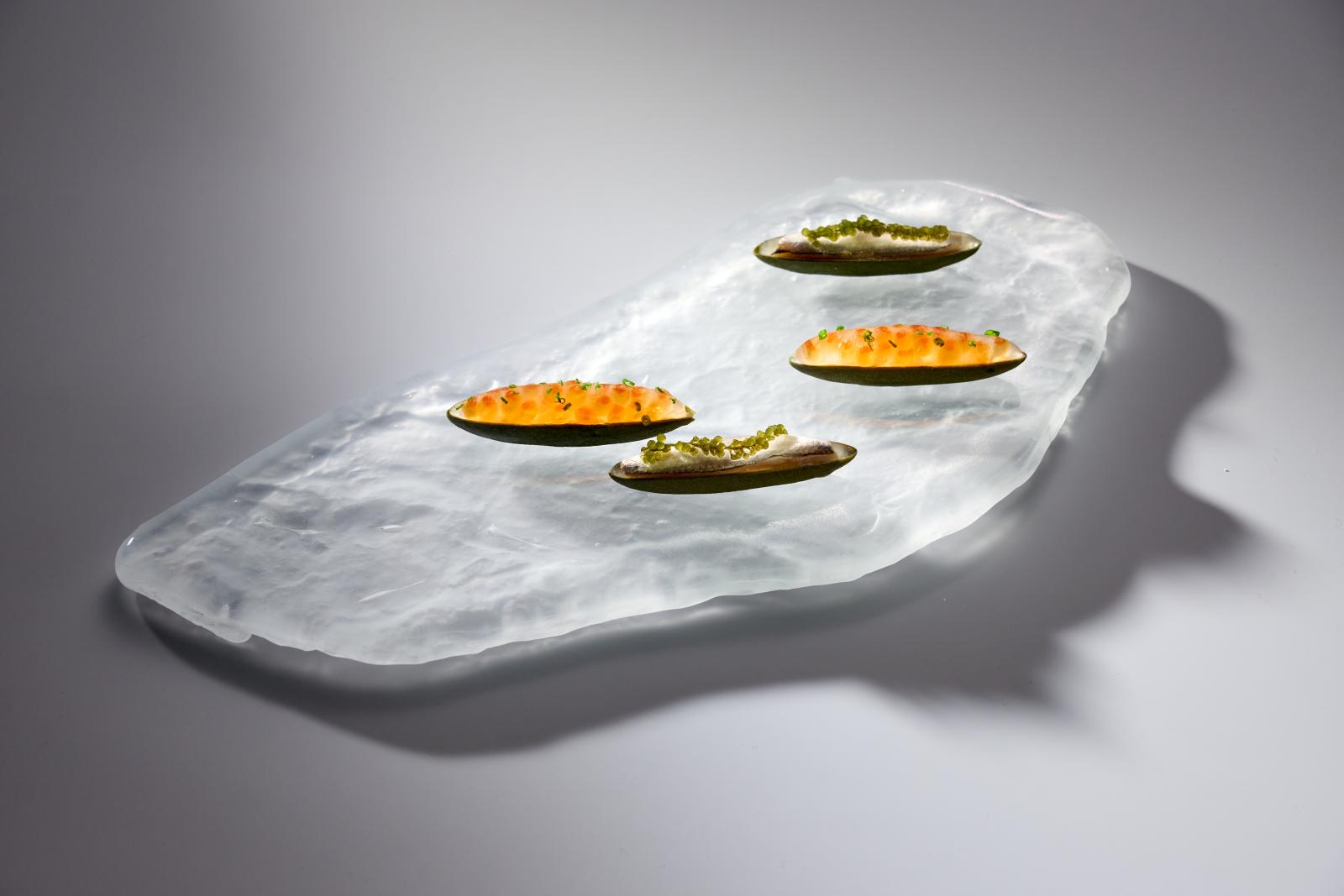 Начинается сет со стартеров — балтийского анчоуса с икрой корюшки и икры форели с копченым творогом. Первое основное блюдо — дальневосточный гребешок с красной смородиной и корнем хрена. Далее следует тартар из мурманской креветки с грибной карамелью и укропом. Третье блюдо — сет фуа-гра с копченым топинамбуром и карамелизированным луком, а затем язык ягненка с семью видами капусты. Основную часть сета завершает говядина со сморчками, пюре из лисичек и маринованным боровиком.